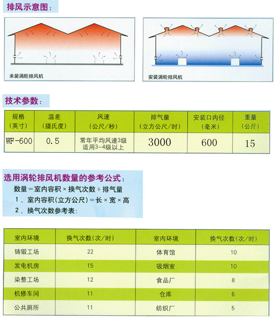 6.该产品使用各种厂房、车间和公共场所,而且可在不超过31.5的斜屋面上,将涡轮轴线调整为垂直状态。